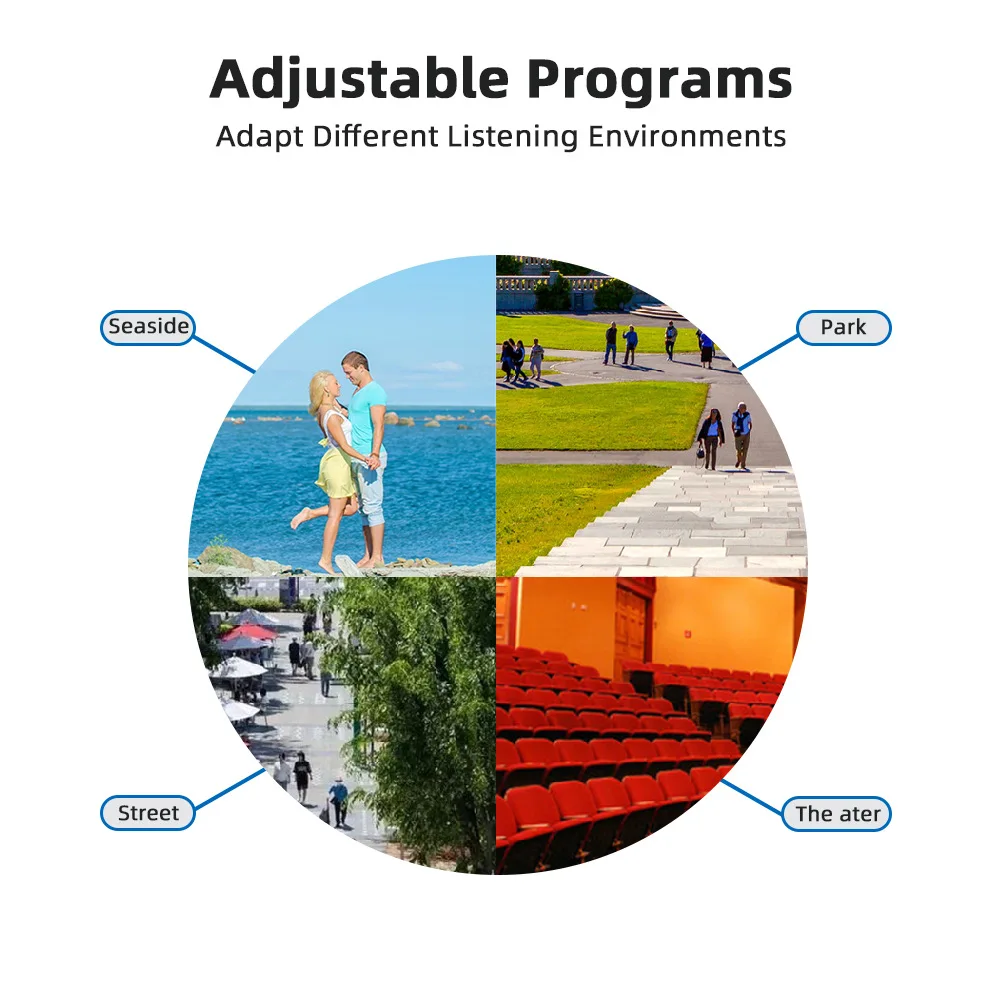 【OTC HEARING AIDS】:Different from traditional head-mounted and ear-hook hearing aid,Our hearing amplifier is very small and lightweight,Nearly invisible that is convenient for you to attend various occasions.