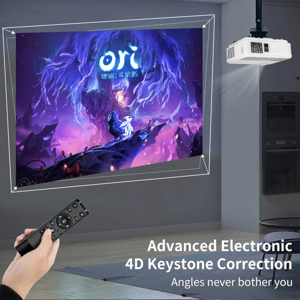 4K UHD Beam Projector for Movies with Auto Focus Keystone Correction Android TV Bluetooth Full HD 1080P Home Theater Projector