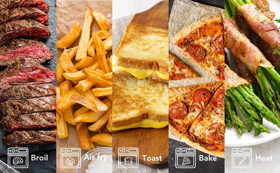 4. Precise Temperature Control: The maximum temperature can reach 450℉, and the time setting range is 60 minutes, ensuring that you can set the right cooking temperature and time for a variety of foods