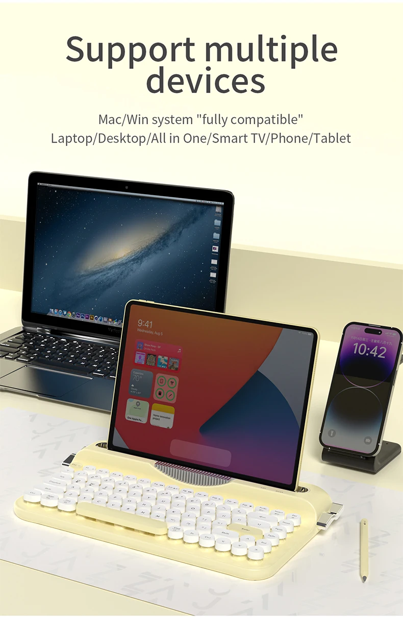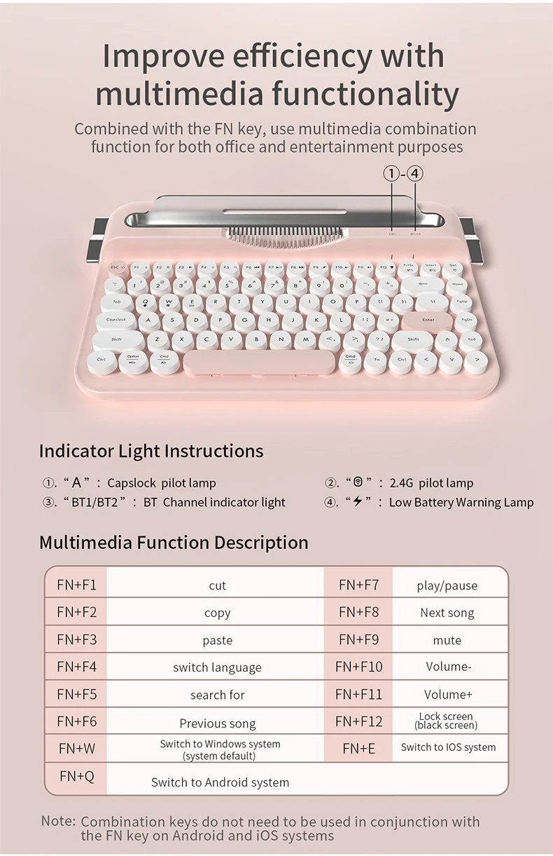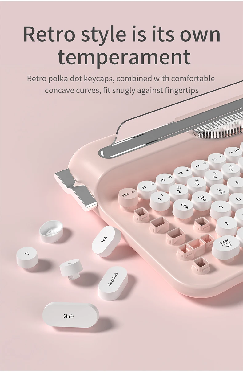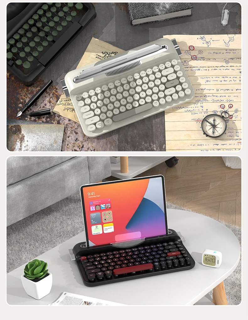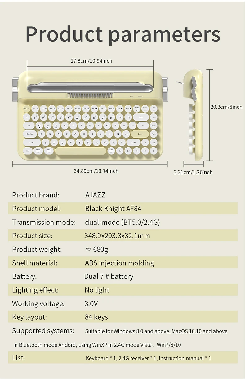 AJAZZ AF84 Wireless 2.4G Bluetooth Dual Mode Retro Keyboard comes with fixed groove bracket for multi-device connection