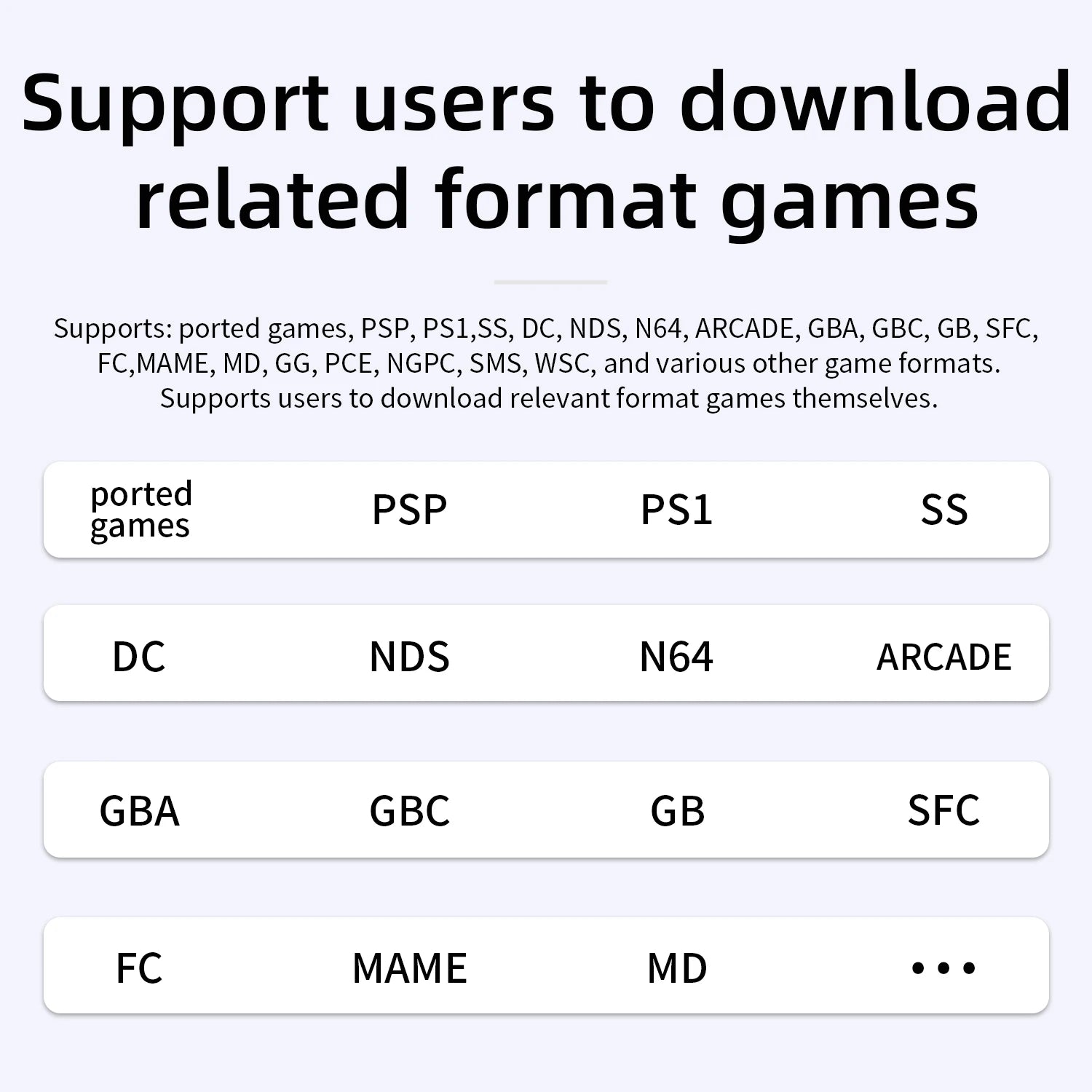 RG 40XXV handheld game console, support more than 10 game format . supports users to download games in related formats themselves. supports Dual card slots, support TF card expansion, maximum 512GB.