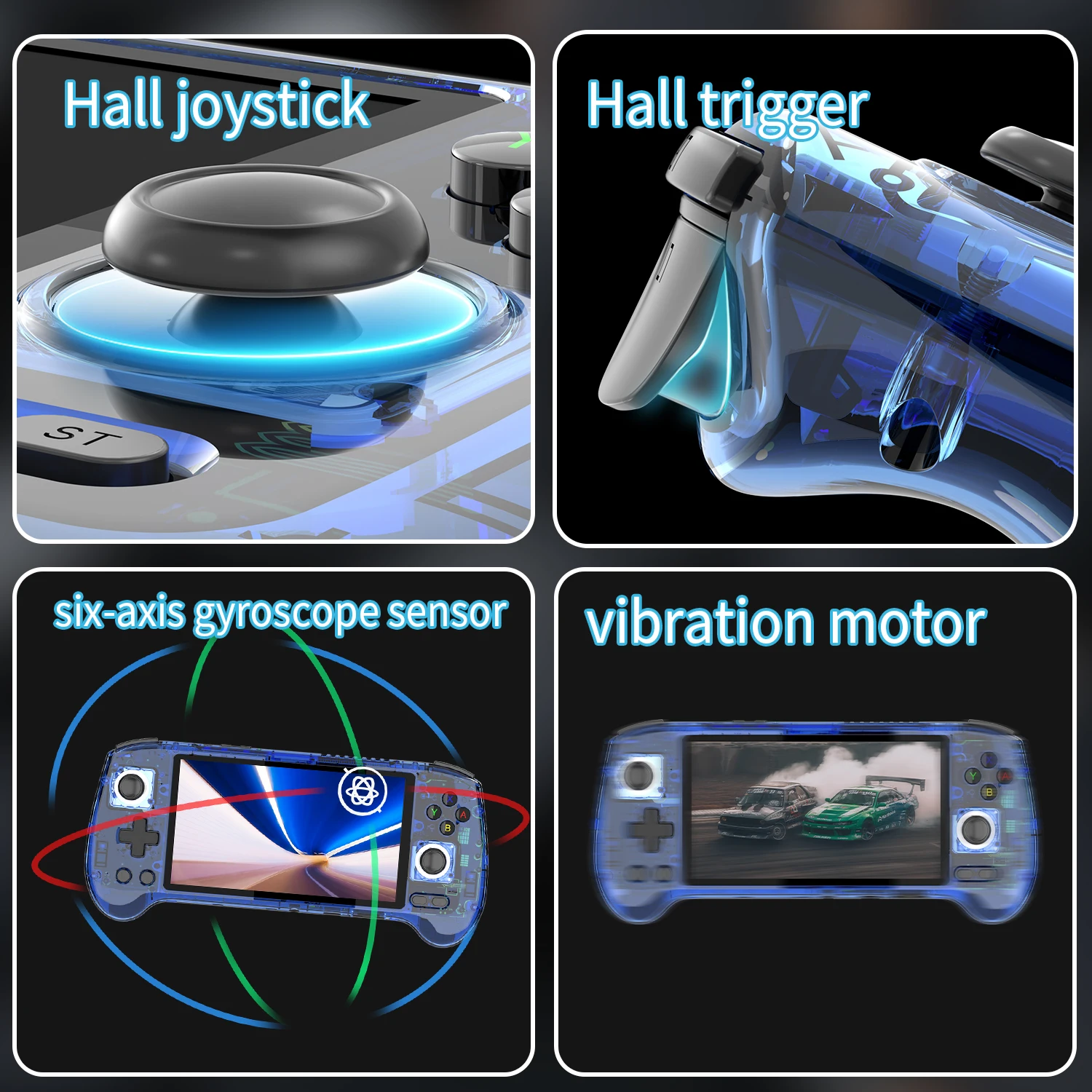 Built-in Hall joystick, six-axis gyroscope sensor, Hall trigger, high-speed fan + heat pipe active heat dissipation,support FOTA wireless upgrade, netplay, streaming, wireless screencasting,USB Type-C supports 1080p Display Port output,vibration motor, |