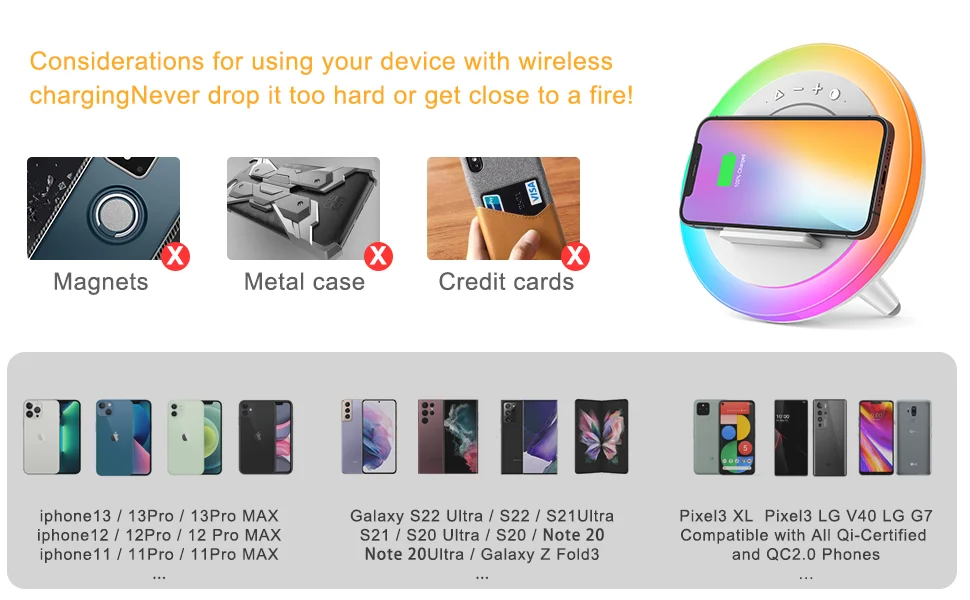 5.Avoid thick protective cases (> 0.07") and other accessories when charging your device.