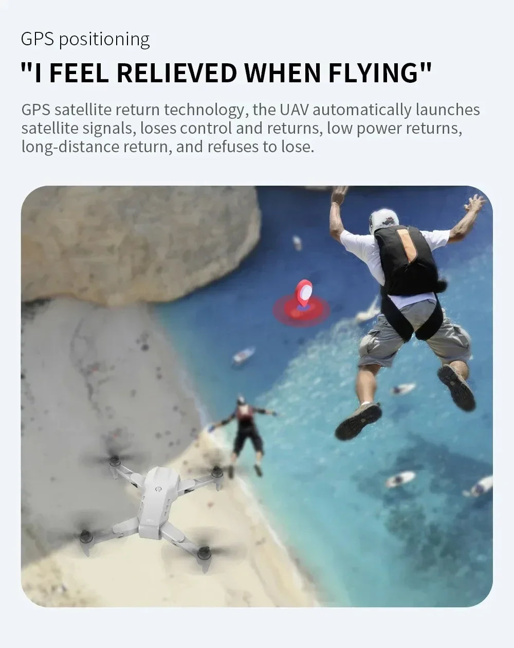 - GPS Assisted Flight. Provides you with accurate positioning details of your drone.The drone will automatically return to home precisely when its battery is low or the signal is weak when flying out of range, never worrying about losing the drone.