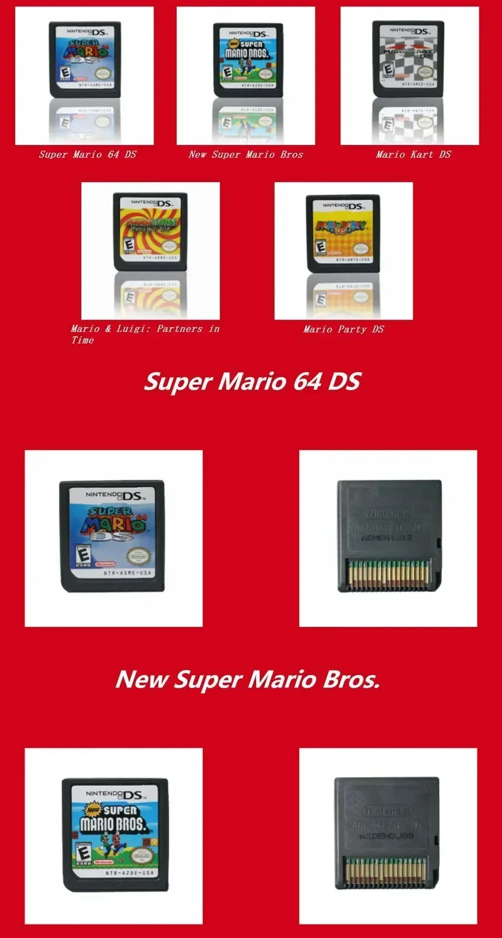 DS Games Chip Card New Super Mario Bros Video Game Console Card Mario Party DS Mario Kart DS Card for NDSL 2DS 3DS