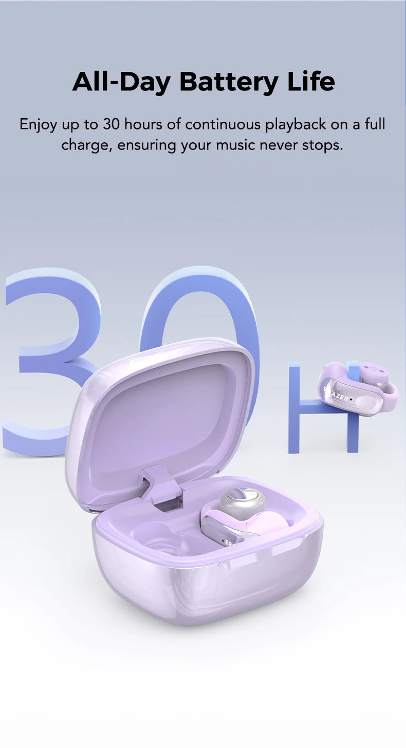 🔋 Battery superhero – Earbuds last 30 hours, Music live forever