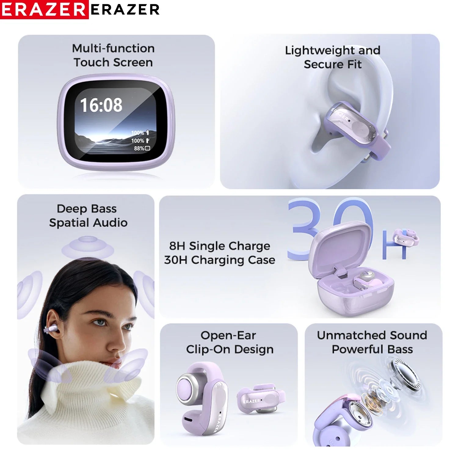 ERAZER XF28 Ear Clips AI Translator Earphones Bluetooth V6.0 Comfortable Stable Sports Wireless Headphones with LCD Display