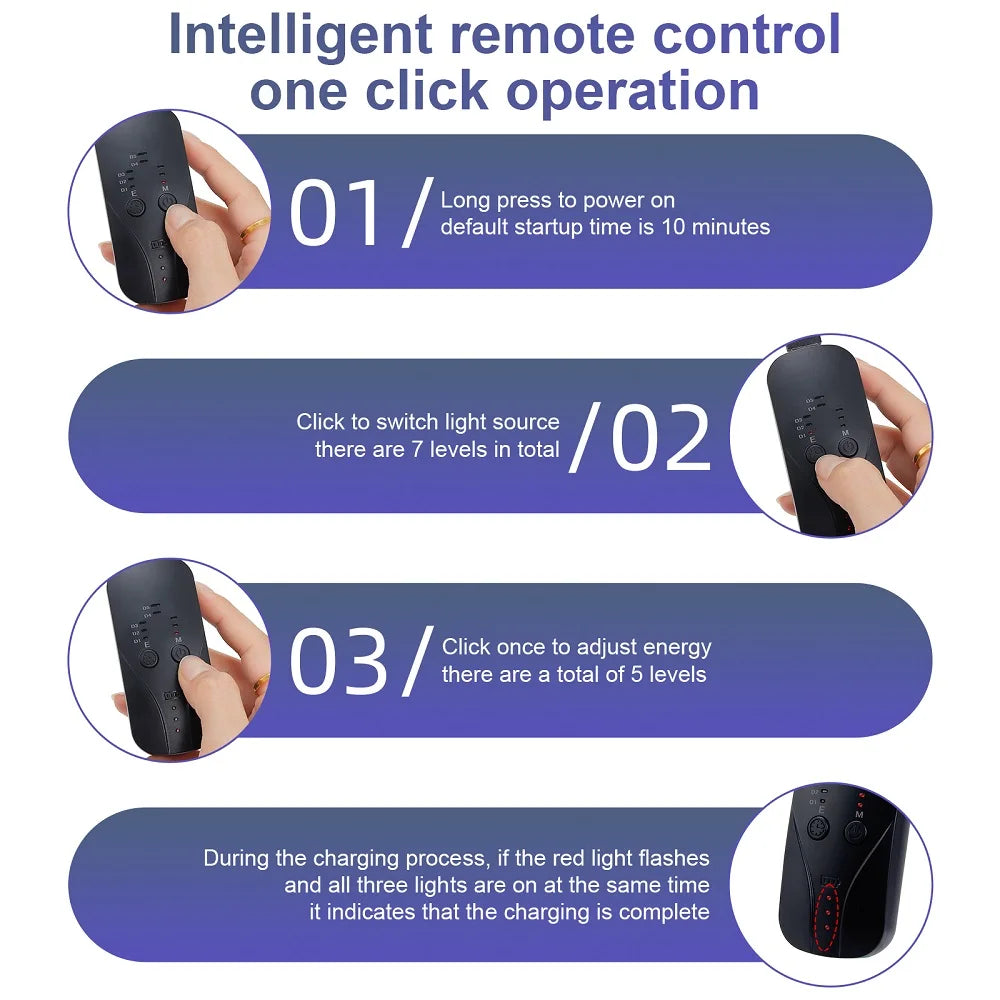 6.More intimate design. Eye patch, prevent strong light from shining on the eyes and keep them safe to open. Fixed straps, sturdy and durable, the two ends of the connection fit, not easy to loose. Remote control, simple operation, easy to use, mobile freely.