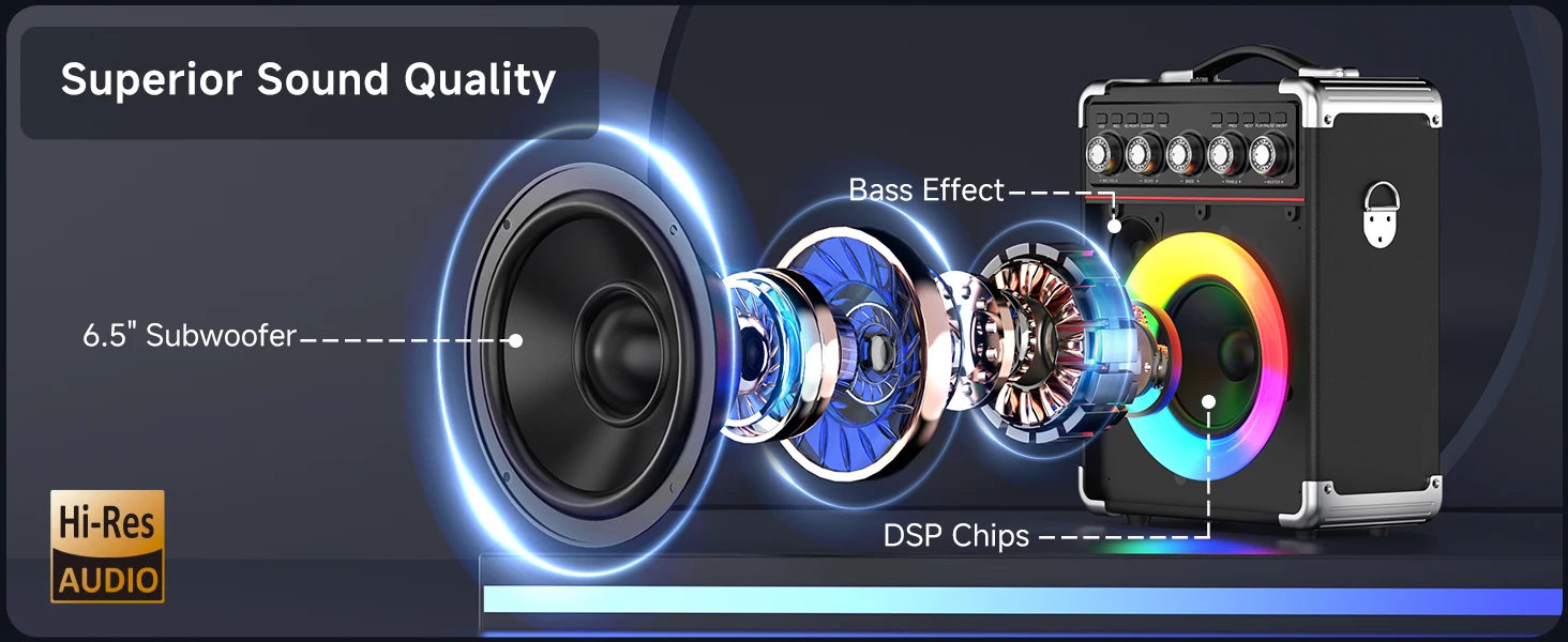 Easy-to-use Volume Control】Whether you're adjusting the overall speaker volume or fine-tuning the microphone levels, the precise knobs allow for effortless sound management. You can easily balance vocals with background music, ensuring a professional sound quality for every party