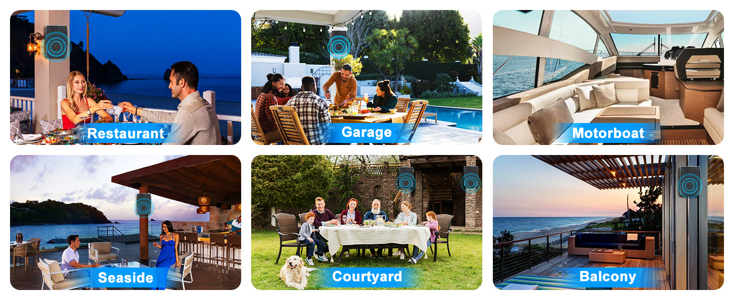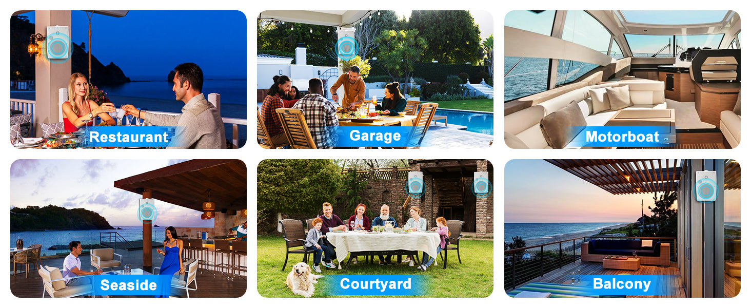 IP66 Waterproof Design: The 6.5 Inch outdoor wall mount speakers are engineered with a rugged and durable build that withstands harsh weather conditions. They're designed to resist water, dust, ensuring high-quality sound performance throughout the year,so it can be installed in any open space—by a pool, in the patio or a sunroom, or tucked away somewhere in the backyard