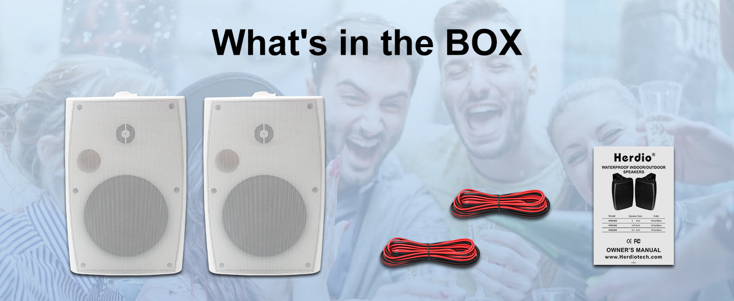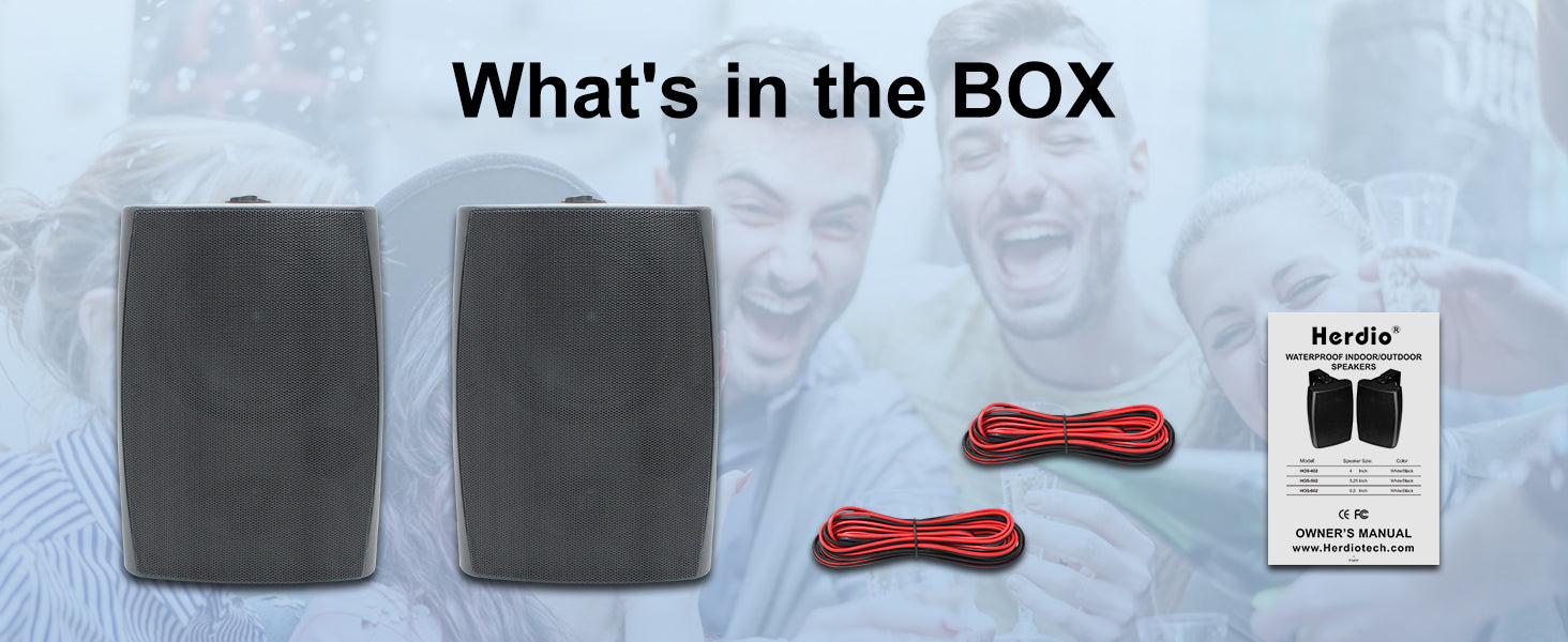 Included Components: 2*Speakers Cables, 2*Outdoor Speakers, 1*User's Manual