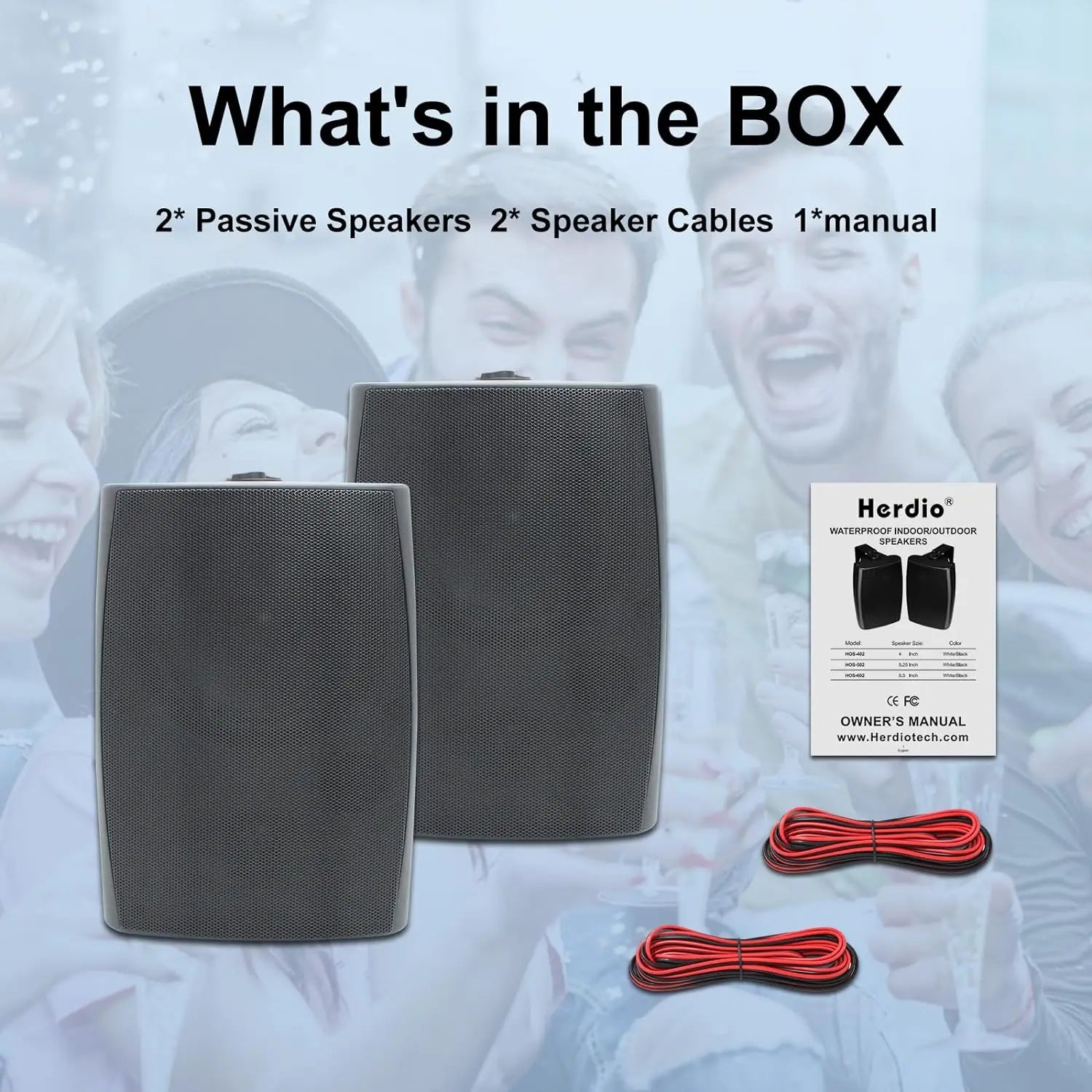 Herdio 400W 6.5 Inch Passive Outdoor Speakers Wired Waterproof,2 Way Wall Mounted Speakers with Powerful Bass for Patio Home Indoor Poolside Deck Backyard