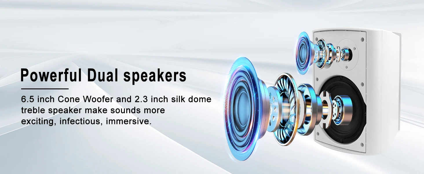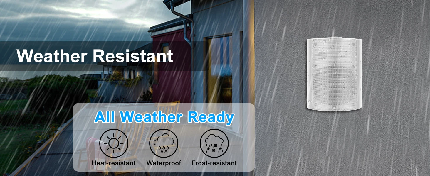 【SUPERIOR SOUND】The Outdoor speakers system powers a 1.0” superior dome tweeter, 5.25” aluminum injection cone woofer. That legendary Herdio sound is now made to rock from your family room, backyard , deck, garage, under the eaves, or near the pool,