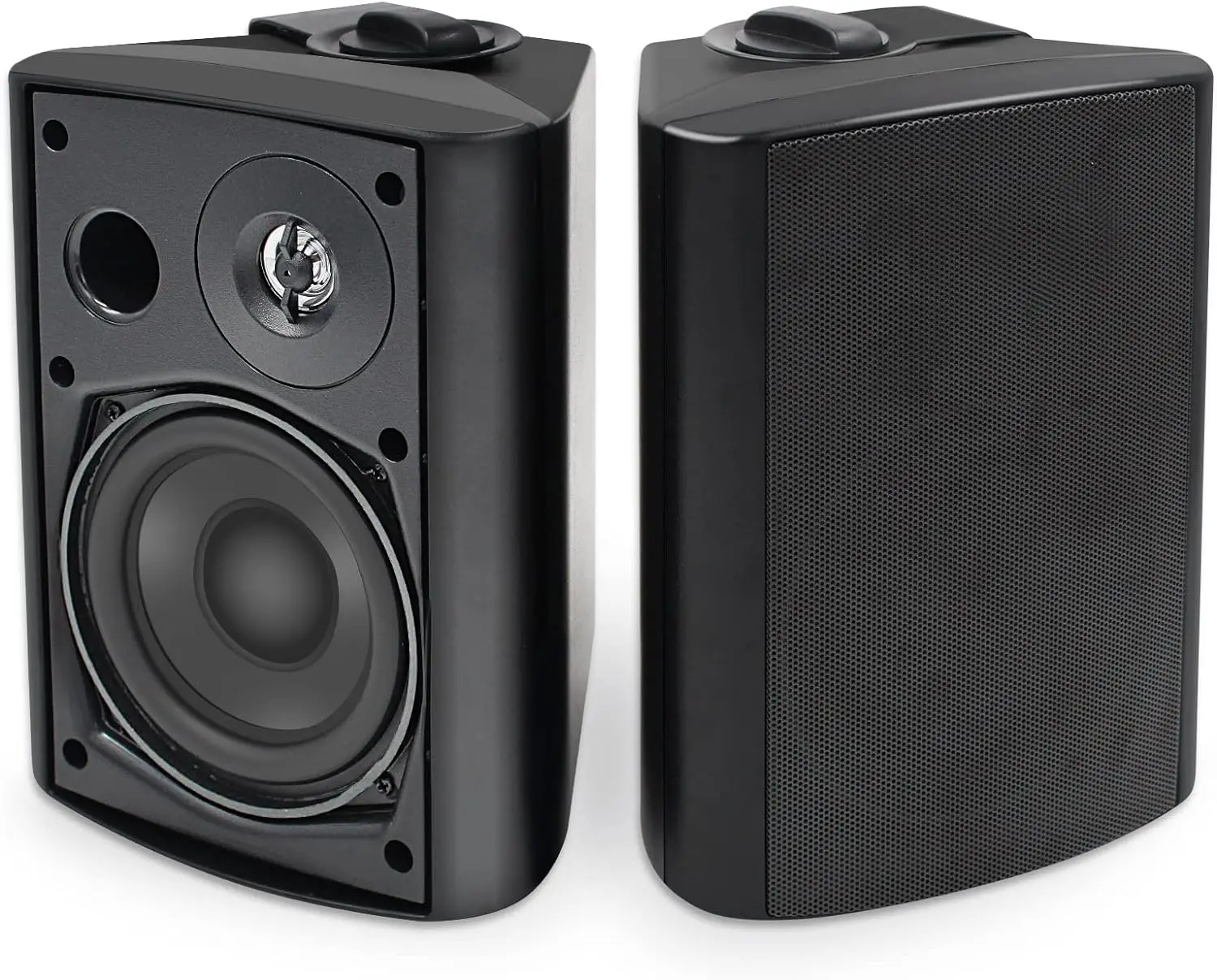 【SPEED-LOCK MOUNTING BRACKET】 It offers EASY, ANTI-SLIP ONE-HANDED INSTALLATION allows you mount these speakers vertically or horizontally, to deliver the best possible sound in a varirty of situations, Simply Mount the swiveling U-bracket. Adjust angle and fasten the speakers with a click