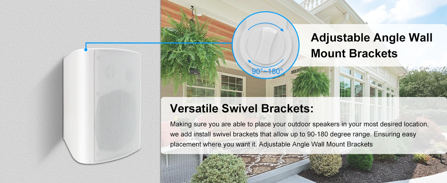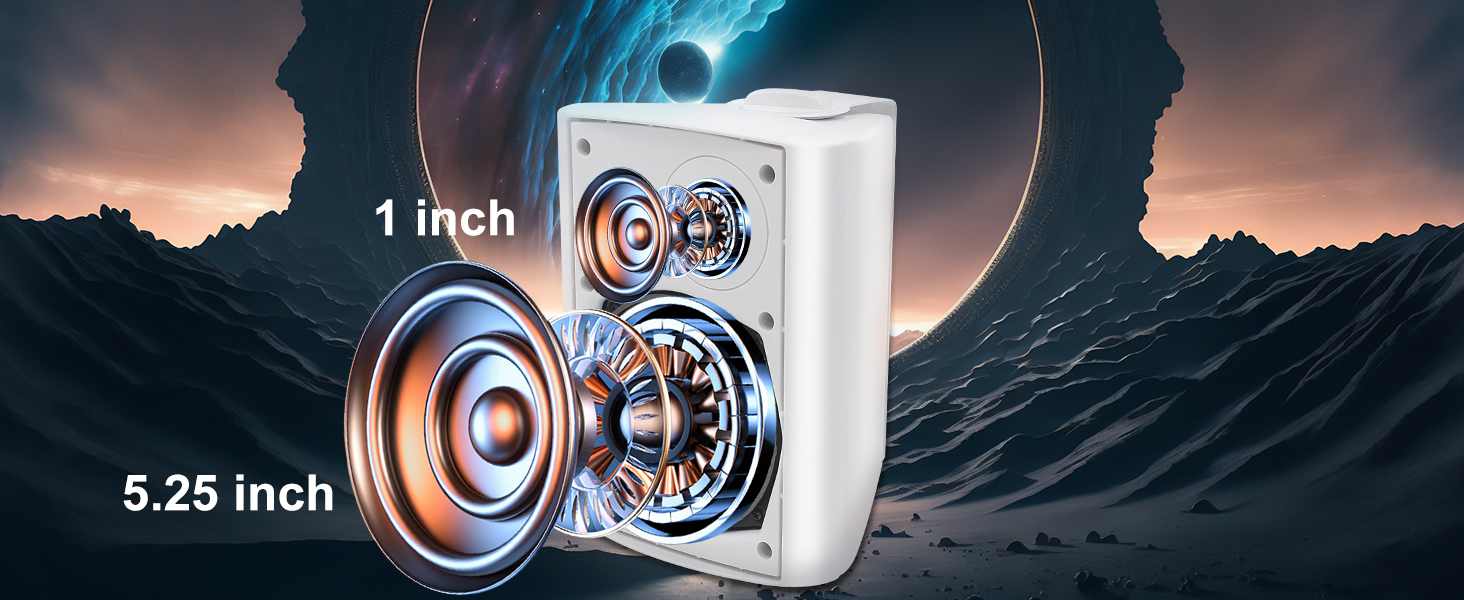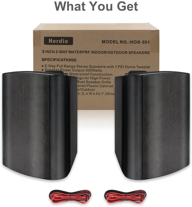 Herdio 5.25'' 300W 2PCS Passive Wired Indoor Outdoor Speakers Patio Deck Speakers All Weather Wall Mount System For Garden Home