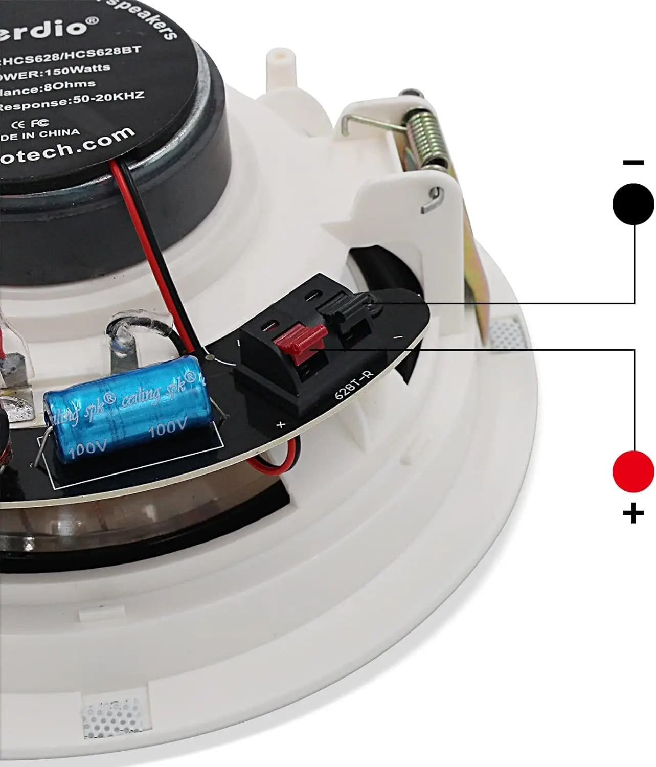 [Crystal Clear Sound] With the in ceiling, in wall 6.5-inch woofer and 1-inch tweeter, you will be able to enjoy crystal clear sound and comfortable listening from anywhere in the room. Also, you can place the speakers in any room of your home, so that you do not have to use any floor or shelf space, for a unique sound experience.