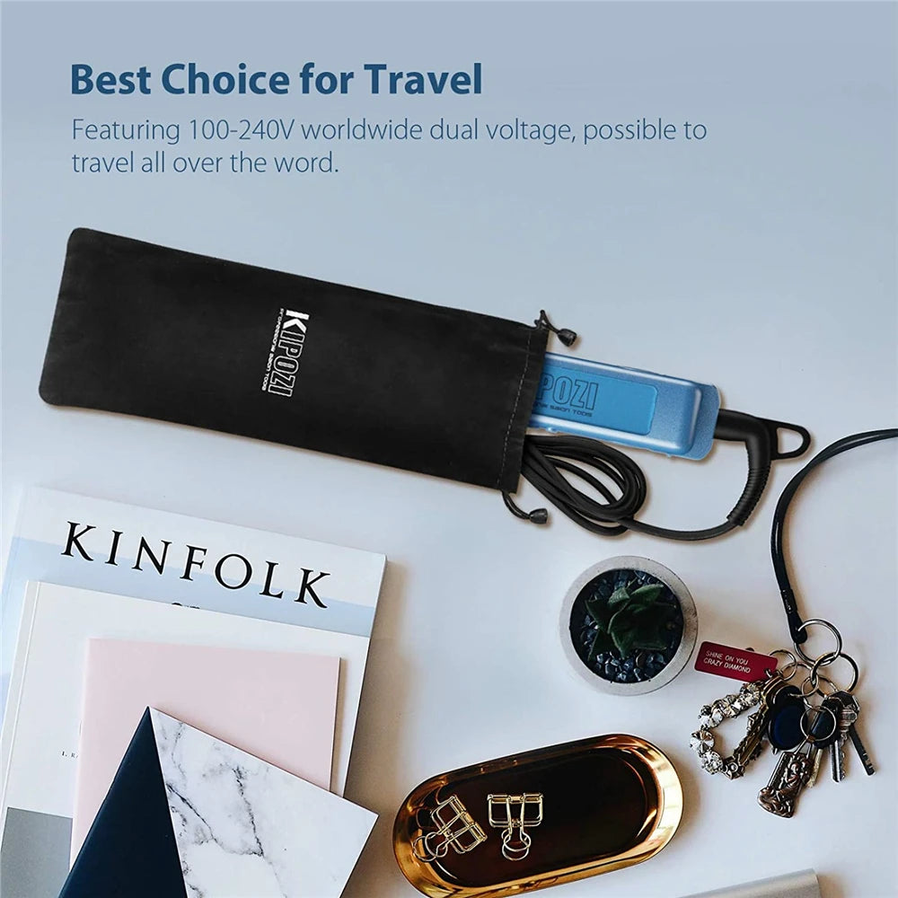 KIPOZI Professional Titanium Flat Iron Hair Straightener with Digital LCD Display Dual Voltage Instant Heating Curling Iron