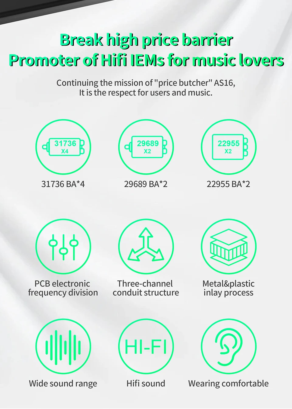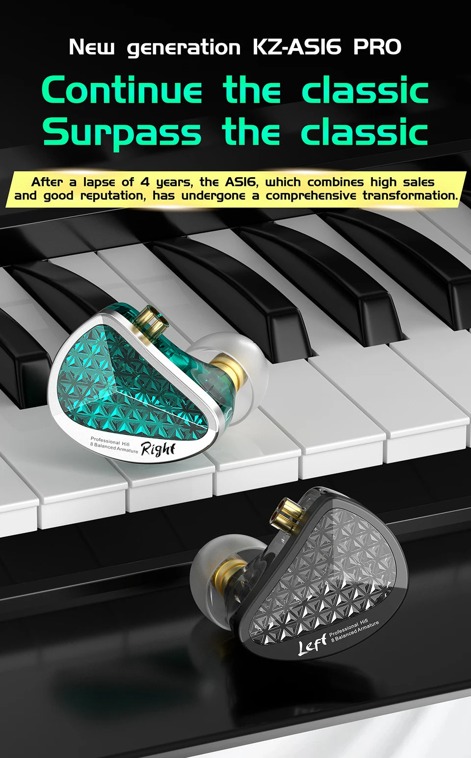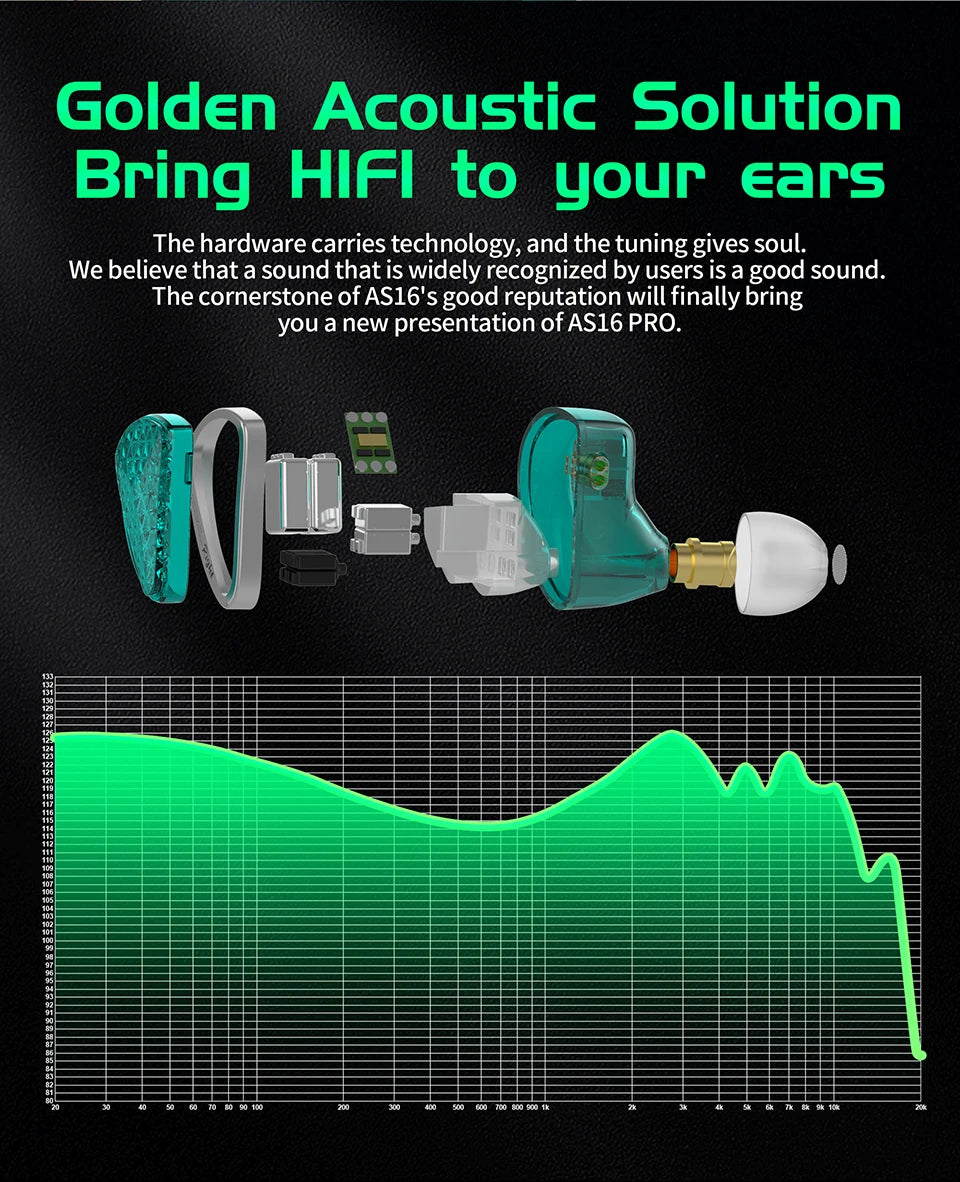 KZ AS16 Pro In Ear Earphones 16BA Balanced Armature HIFI Bass Monitor Headphones Noise Cancelling Earbuds Sport Headset