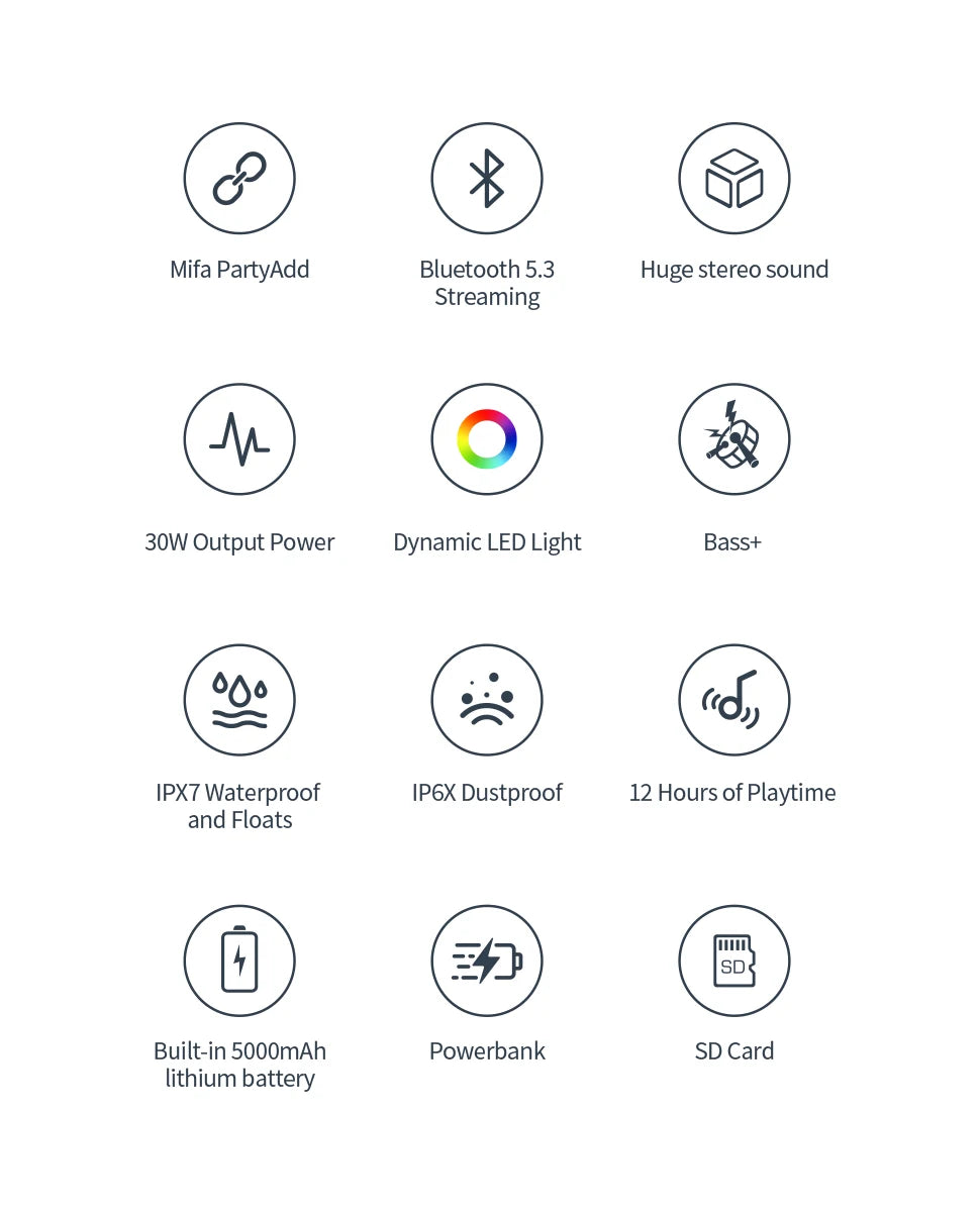 link multiple (more 100+) mifa WildRod, compatible speakers to truly pump up your party.