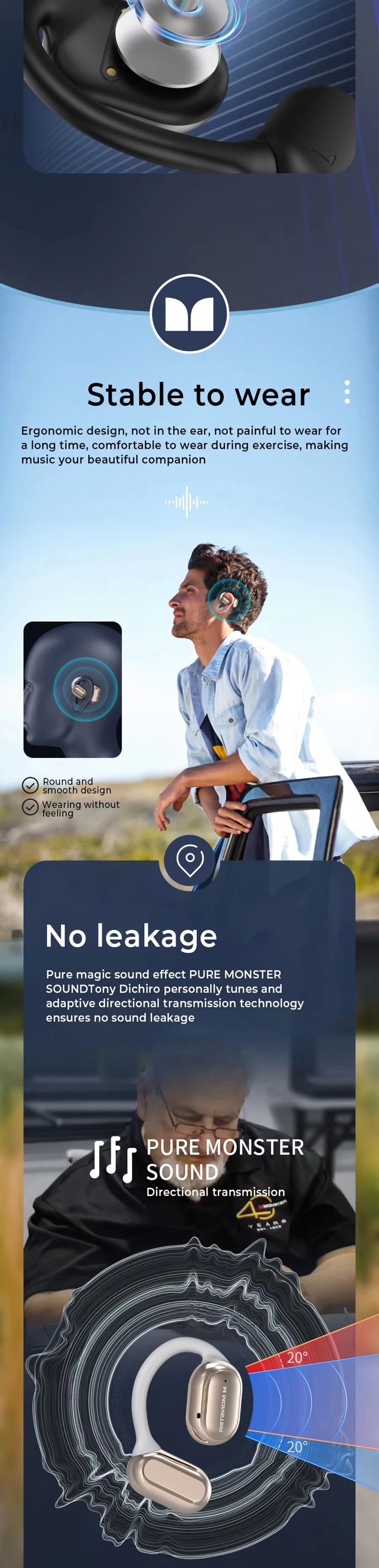 Monster AC100 Open Ear Wireless Bluetooth Headphones HIFI Sound Quality HD Call Music Earphones Waterproof Sports Touch Earbuds