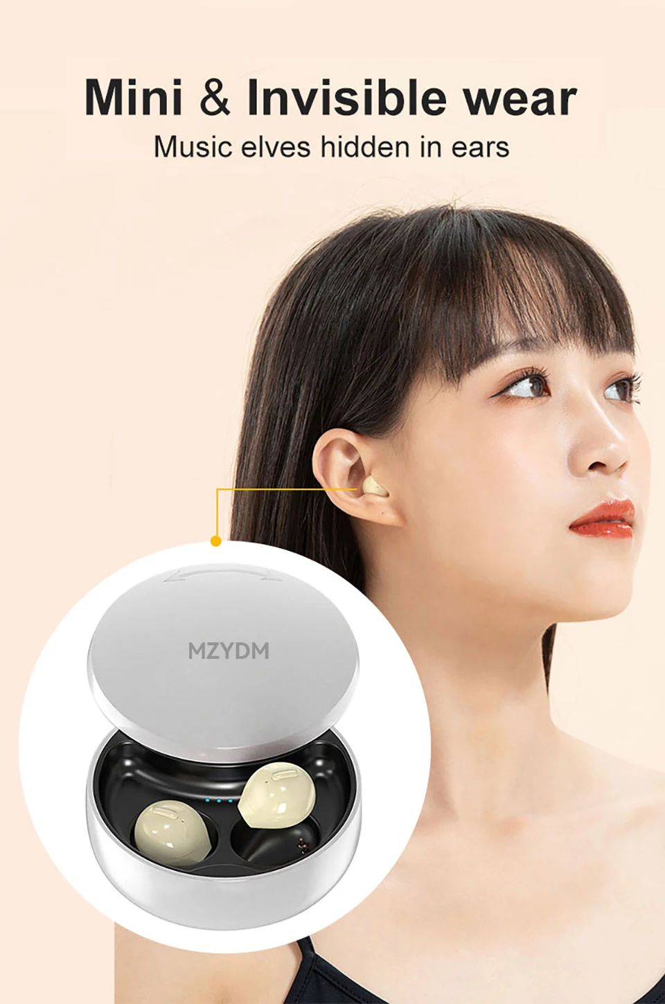 MZYDM Mini Earbuds TWS Wireless Bluetooth Sleep Hidden In Ear Earphones X21S Invisible Sports Waterproof Headphones Built-in Mic