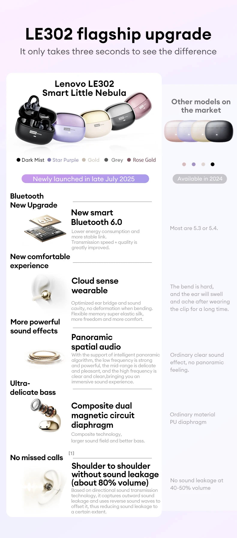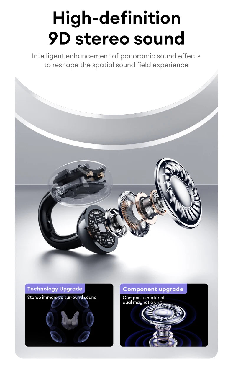 [Comfort Design]: Dual-angle curve fits ear contours. 4.4g feather-light, wear without fatigue. Stays put during naps, stays secure during workouts, no soreness after hours.