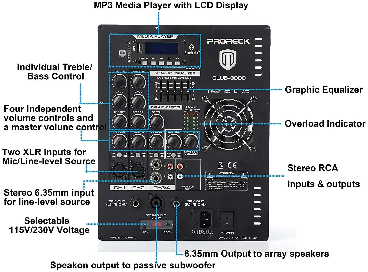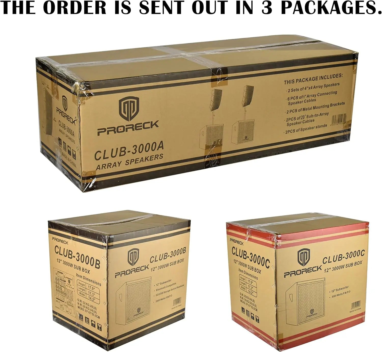 PRORECK Club 3000 12-Inch 4000w DJ Powered PA Speaker System Combo Set with Bluetooth USB Drive Read Function SD Card Remote