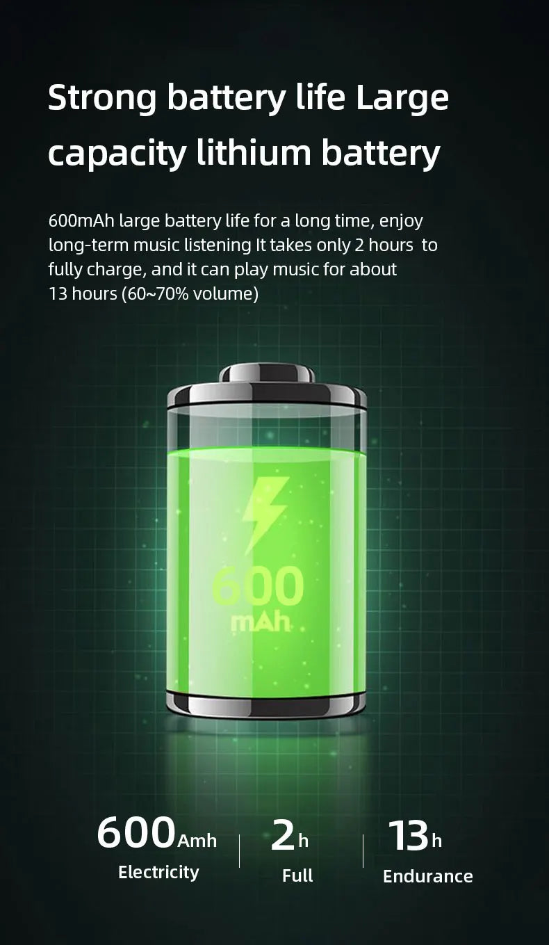 The large capacity battery provides a long life for the wearable speaker, so you can use it without any worries