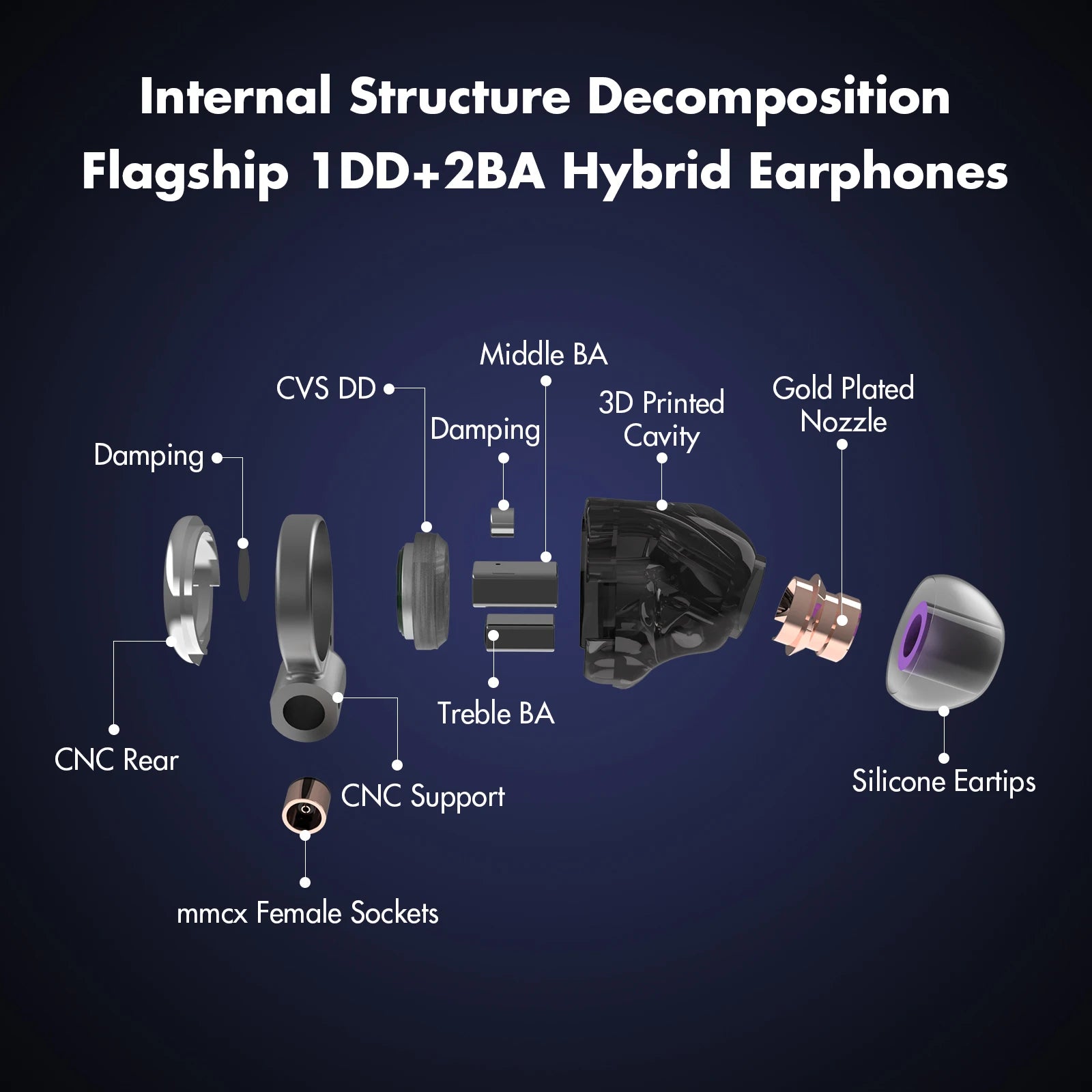 With the devotion to tuning from our professional engineers, physical-electronic hybrid crossover acoustic system, and the new generation 3D-SLA printed resin chamber with CNC stainless steel rear cavity, these headphones effectively reduce overall distortion rates, ensuring smoother integration among driver units, which brings a cohesive sound without any sense of disjointedness.