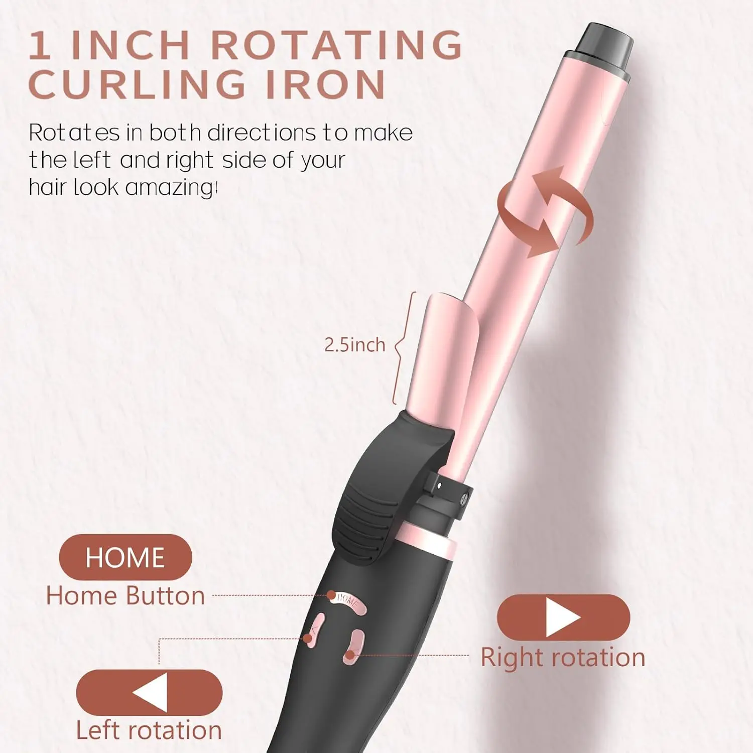 Rotating Curling Iron Automatic Curling Wand with 12 Temperature & Memory Mode Perfect for Beach Waves