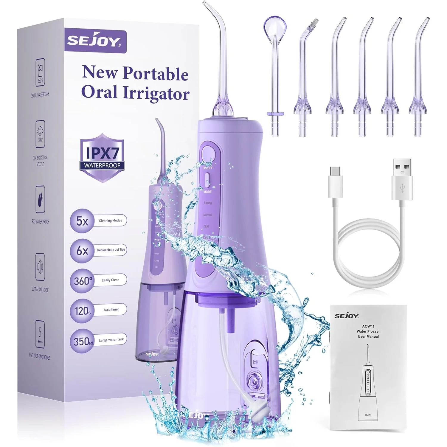 SEJOY Dental Oral lrrigator for Men Women Teeth Cleaner Portable Dental Water Flosser 4 Modes IPX7 Mouth Washing Machine