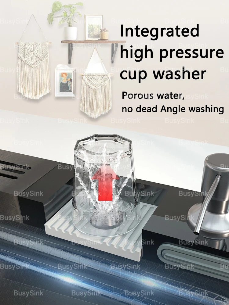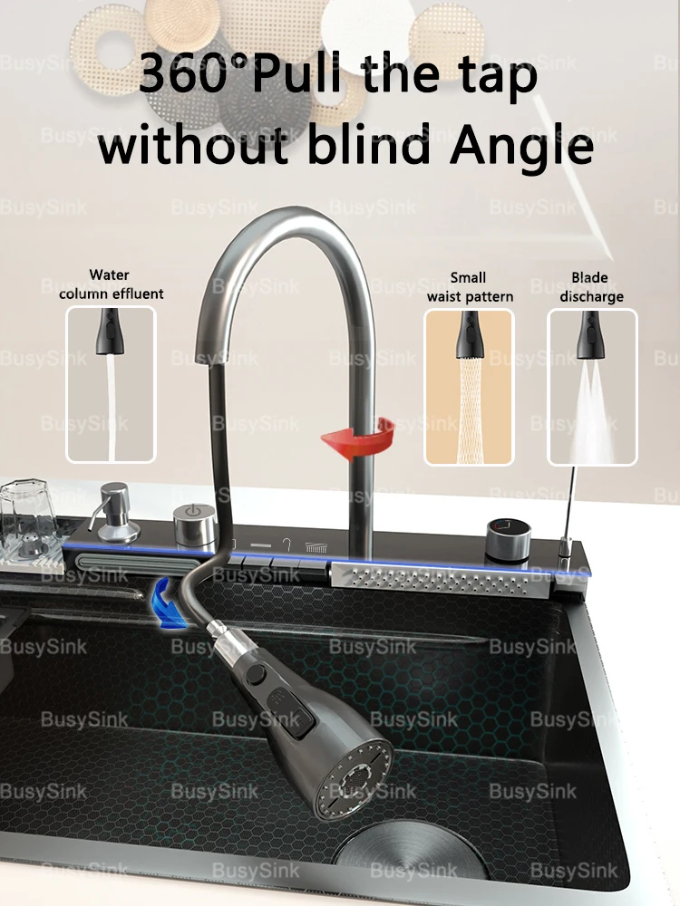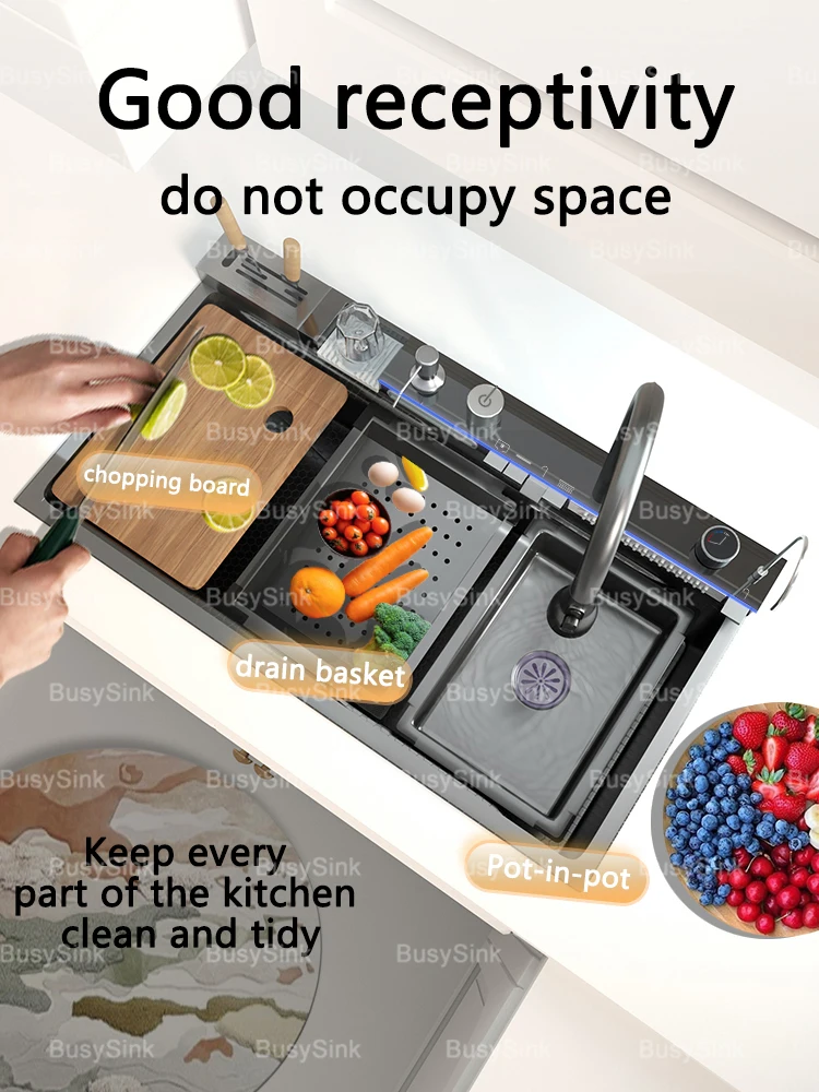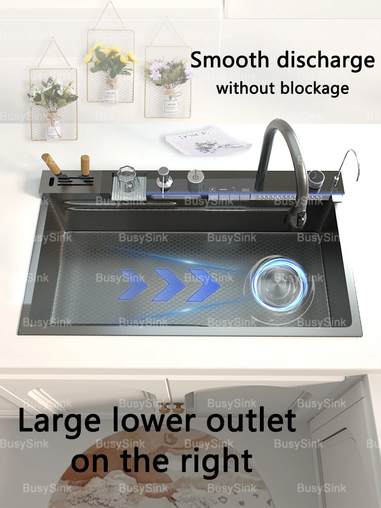 Stainless Steel Waterfall Kitchen Sink Extra Large Single Bowl Digital Display Multifunctional Dishwashing sinks