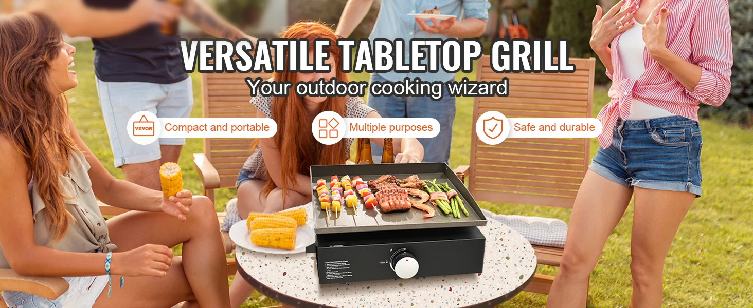 SucceBuy 18/24inch Propane Gas Tabletop Griddle with Hot-rolled Plate Carbon Steel Portable Table Top Griddle Grill for Camping