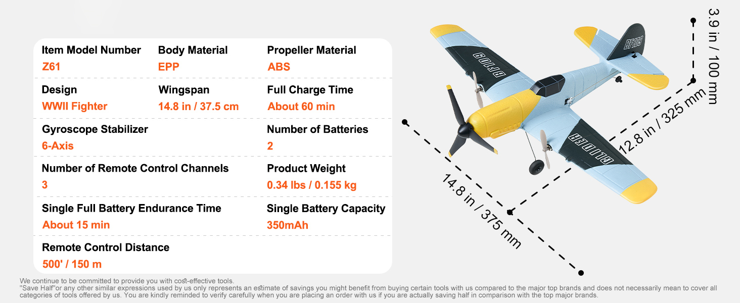 2.4 GHz Wireless Control System: Take full control with the easy-to-use remote. Fly up, down, left, right, forward, and backward with a range of up to 500'/150 m. The 2.4 GHz frequency ensures a reliable connection, allowing multiple remote control airplanes to fly together hassle-free—ideal for friendly competitions! The low battery warning will notify you upon return or landing to prevent unnecessary battery depletion during the flight.