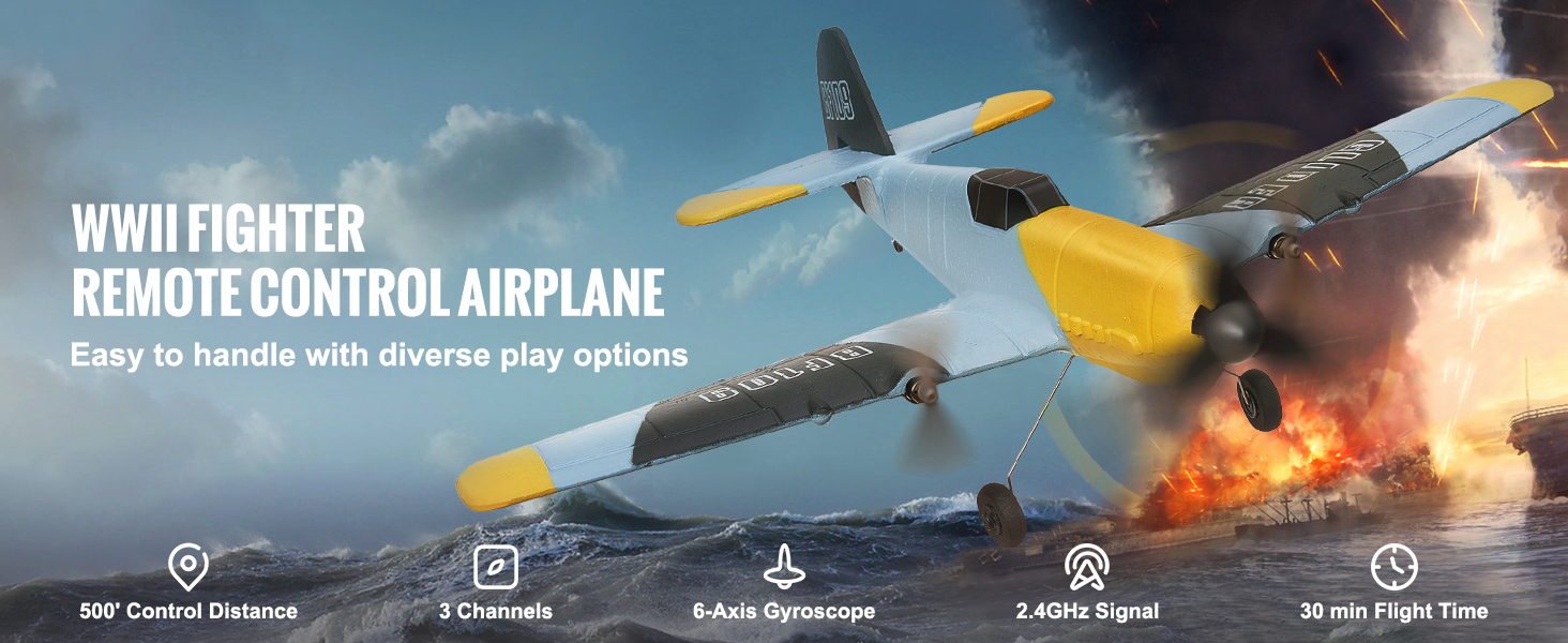WWII Fighter Design: Stand out with this WWII fighter simulation design, adding imagination and excitement to your flying experience. Our remote airplane is perfect for adults, kids, beginners, and anyone who loves aviation fun. Spare parts like batteries and propellers keep the fun going without interruptions.