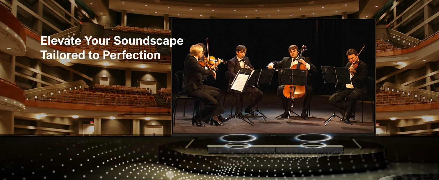 5.1.2 channels soundbar envelop your space, elevate your audio experience with precision in all dimensions (Dolby Atmos 5.1.2 certified). With 2 up-firing drivers and 2 rear surround speakers. Dolby Atmos delivers a more realistic and encompassing surround sound that transports you to the very heart of your entertainment.