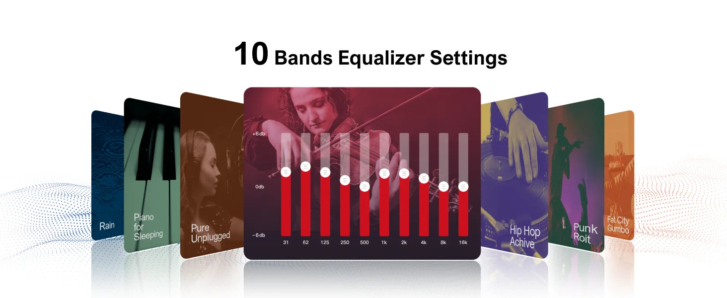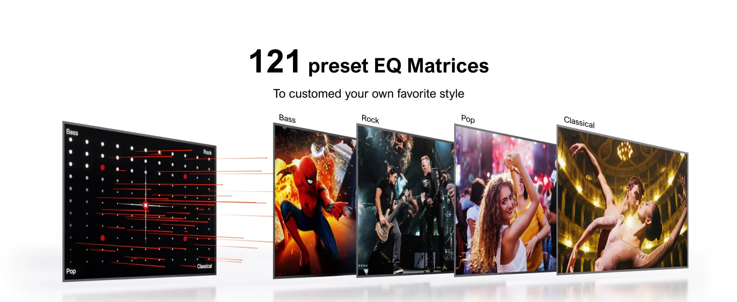 Customize your audio experience like never before with the ULTIMEA app. It offers 121 expert EQ presets in genres such as bass, pop, classic and rock, as well as 10-band EQ modes and 6 custom modes including Movie, Music, Voice, Sport, Game and Night. Thanks to the advanced Customize function, you can fine-tune your sound to match your preferences exactly and each note is.