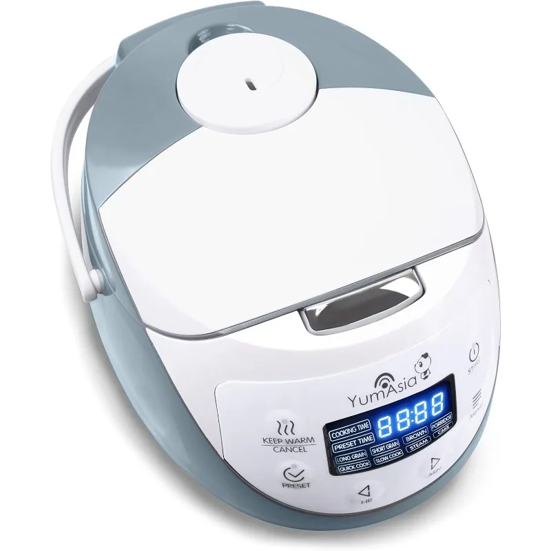 Yum Asia Mini Rice Cooker, Advanced Fuzzy Logic (3.5 cup, 0.63 litre) 4 Rice Cooking Functions, Digital LED display - 120V