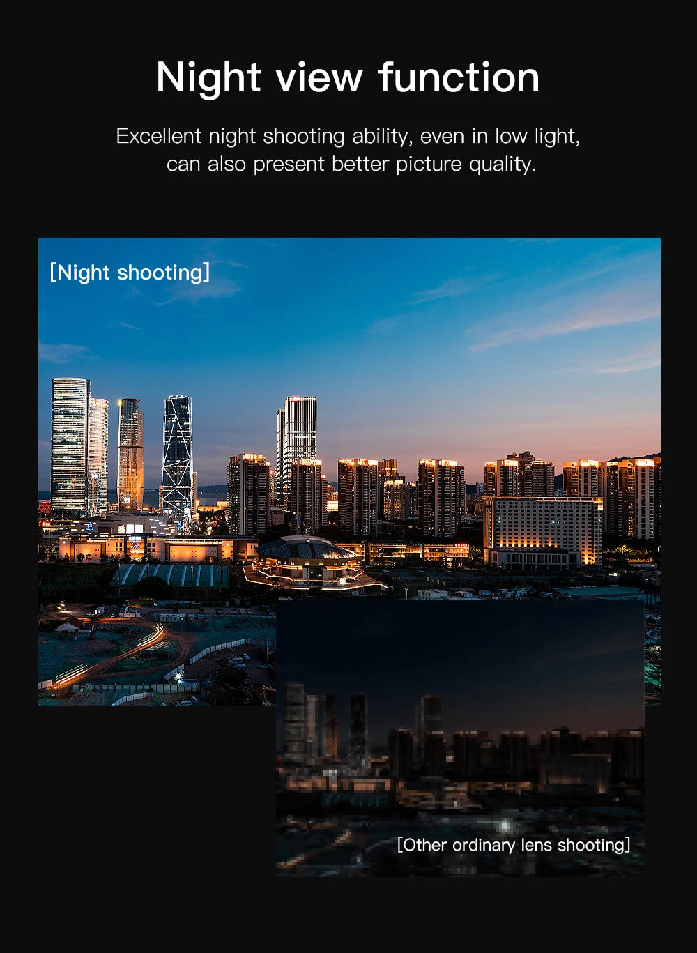 1. Three-axis brushless stabilization gimbal + EIS electronic stabilization, shooting video is more stable .